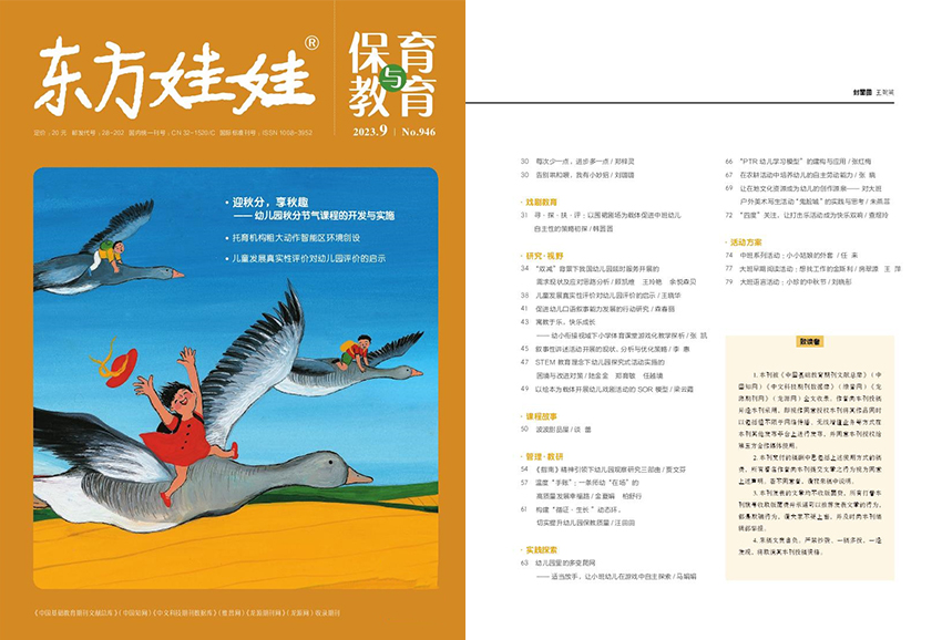 《东方娃娃保育与教育》杂志是一本偏重于儿童保育与教育的专业性刊物,以其独特的视角、研究深度、信息专业性和国际化视野,成为国内外儿童保育与教育领域的独特品牌杂志之一。该杂志以儿童保育、儿童教育为核心内容,每期刊登一批国内外专业的研究和实践文章,旨在向社会提供儿童成长和教育的新思路和新体验,引领广大儿童保育和教育工作者的创新和探索。